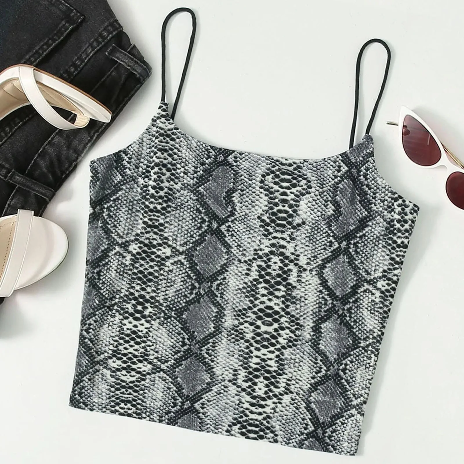 Топ женский летний облегающий на бретельках с принтом коровьей кожи и открытой спиной