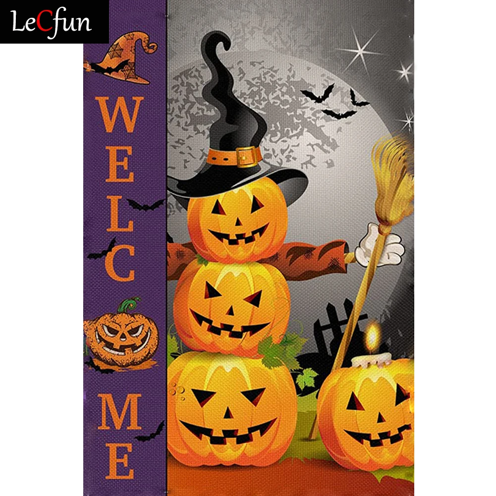 LeCfun алмазная живопись Добро пожаловать Хэллоуин осенние тыквы полная дрель Алмазы Искусство рукоделие вышивка крестиком домашний Декор подарок