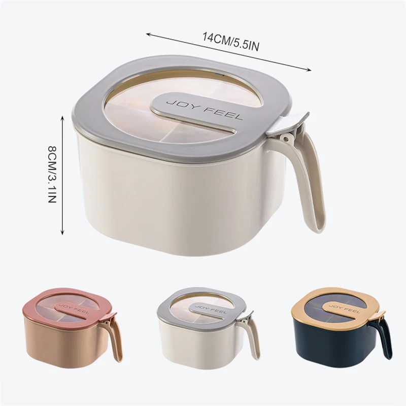 1. Название продукта: кухонная коробка для приправ2. Материал продукта: пищевой полипропилен3. Вес продукта: около 170 граммов4. Размер изделия: 14*8 см