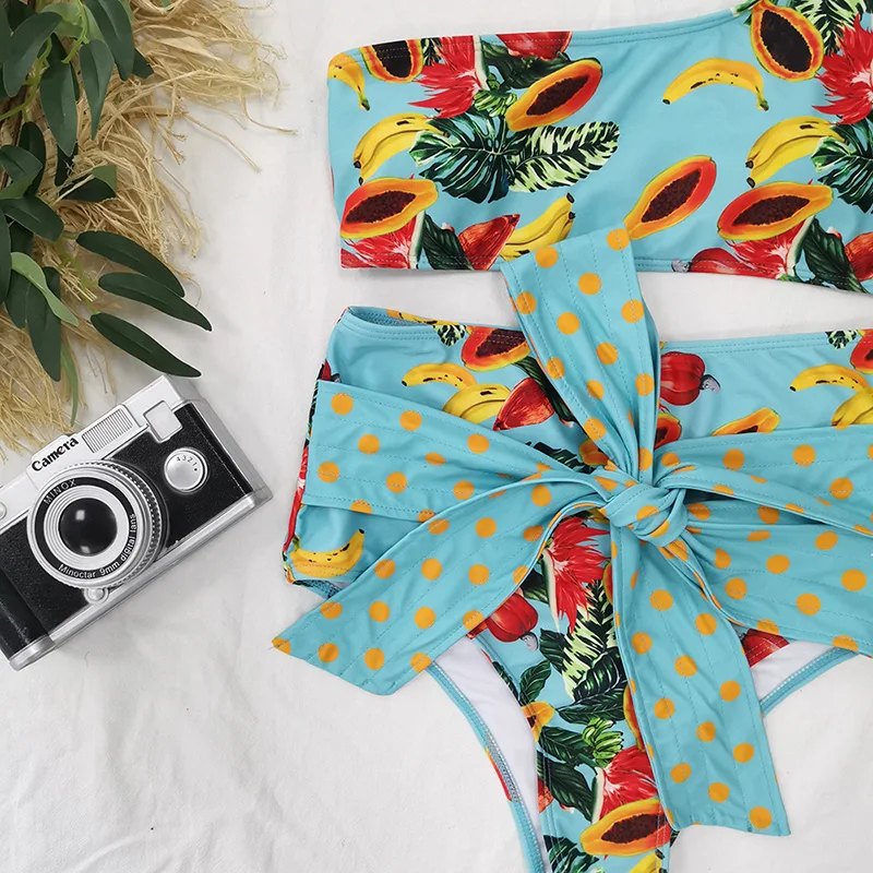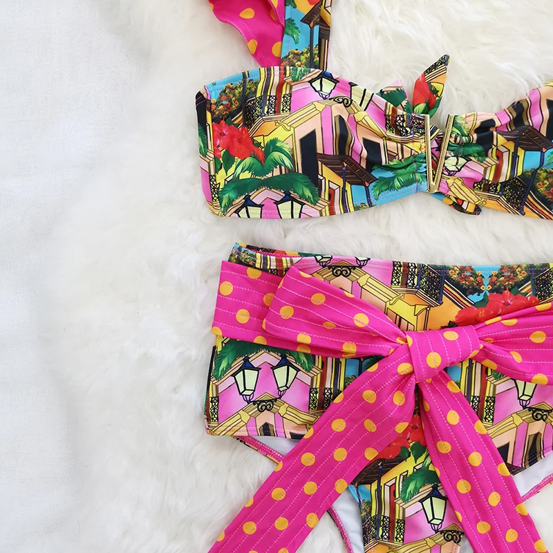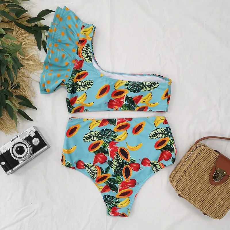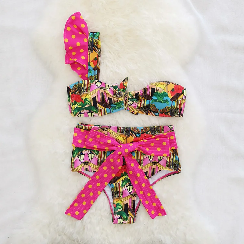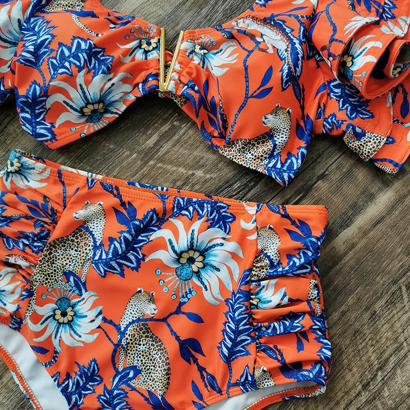 Купальник женский в богемном стиле, с рюшами и завышенной талией