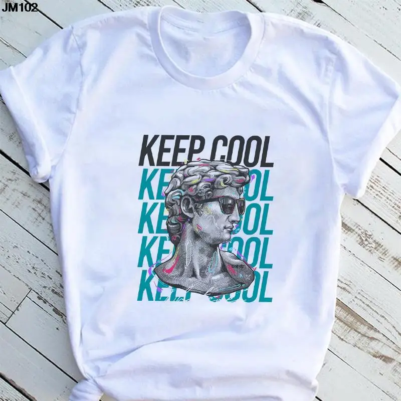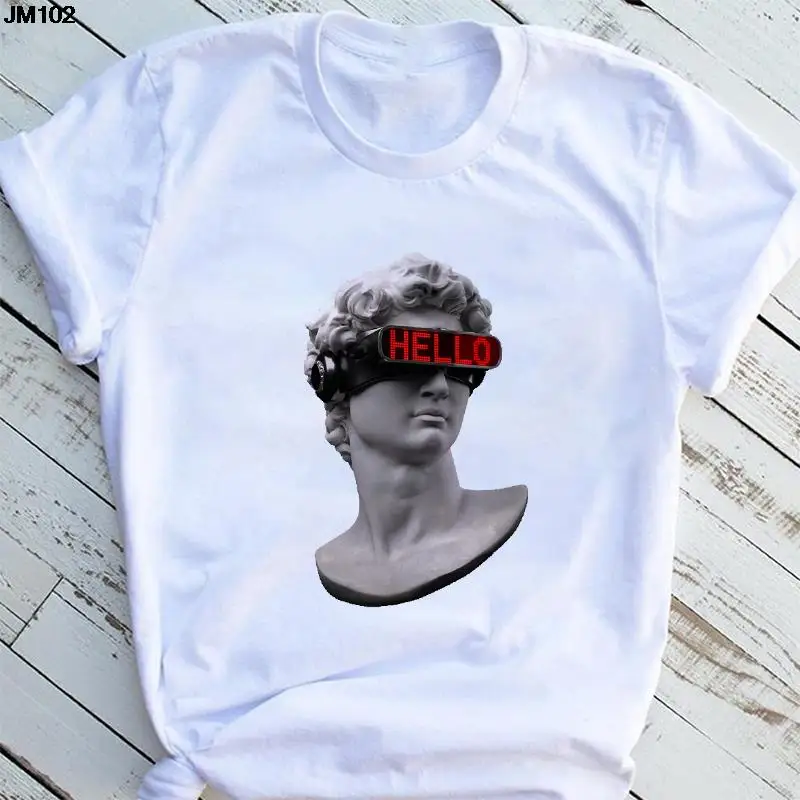 Футболка женская с принтом Давида Микеланджело, белый топ с коротким рукавом в стиле ольччан, одежда в эстетике Харадзюку, на лето