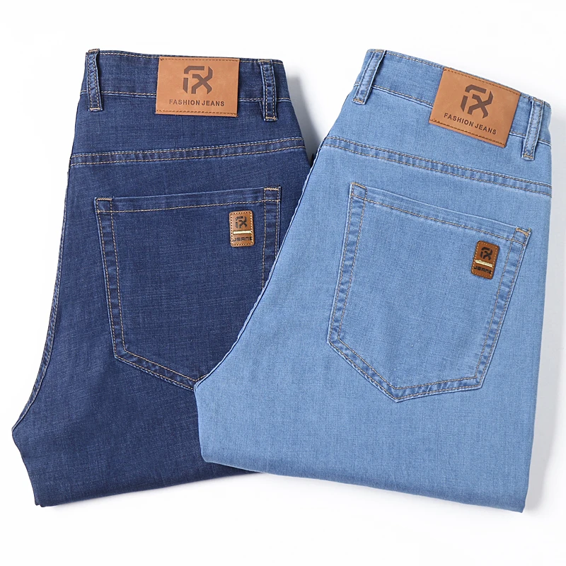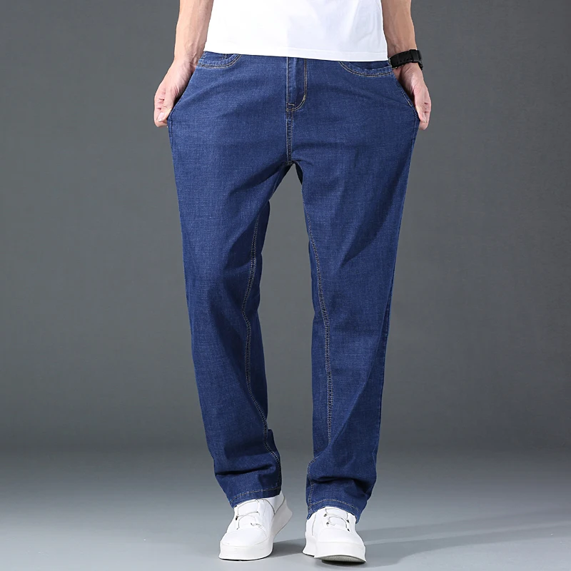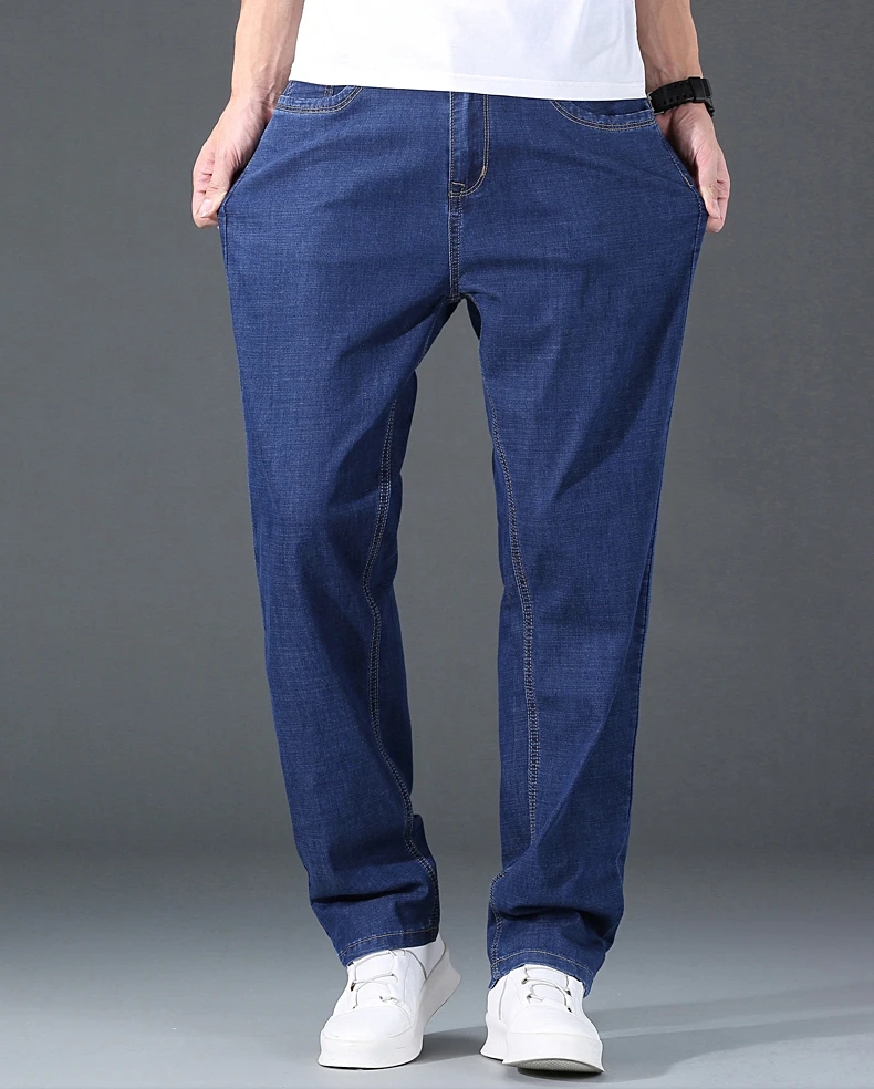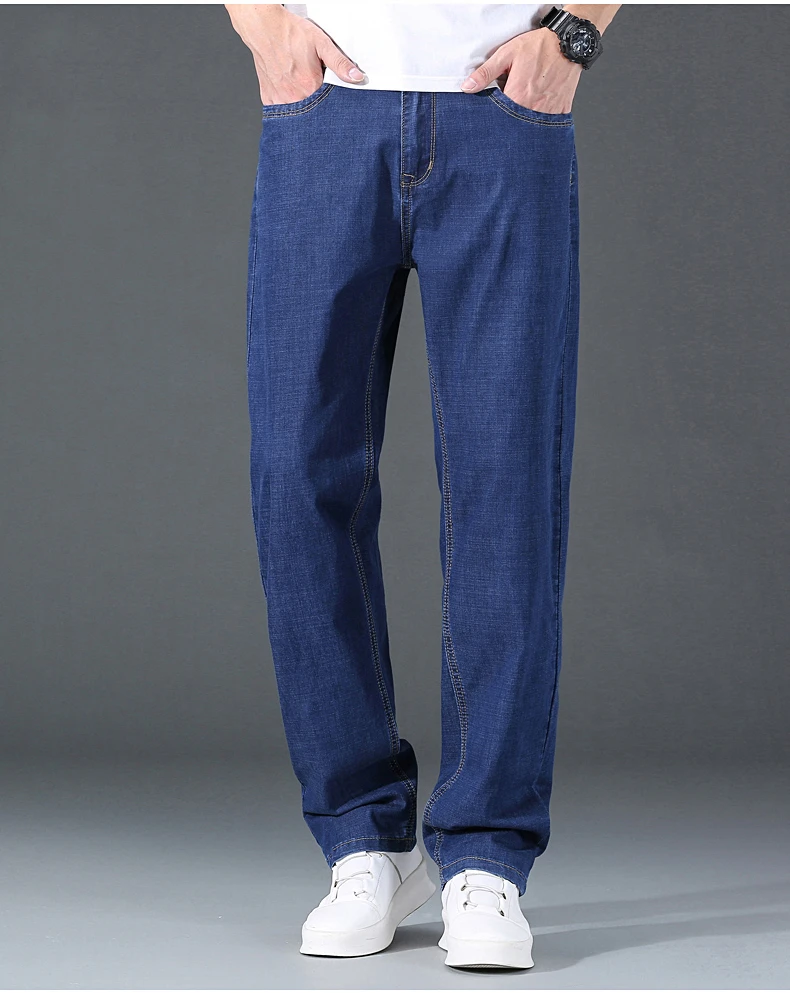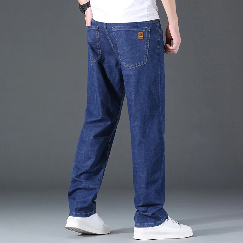 Мужские тонкие прямые свободные джинсы в классическом стиле, деловые повседневные Стрейчевые джинсовые брюки, мужские брендовые легкие мягкие брюки