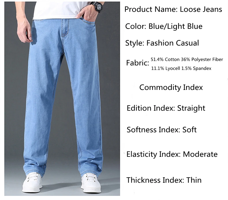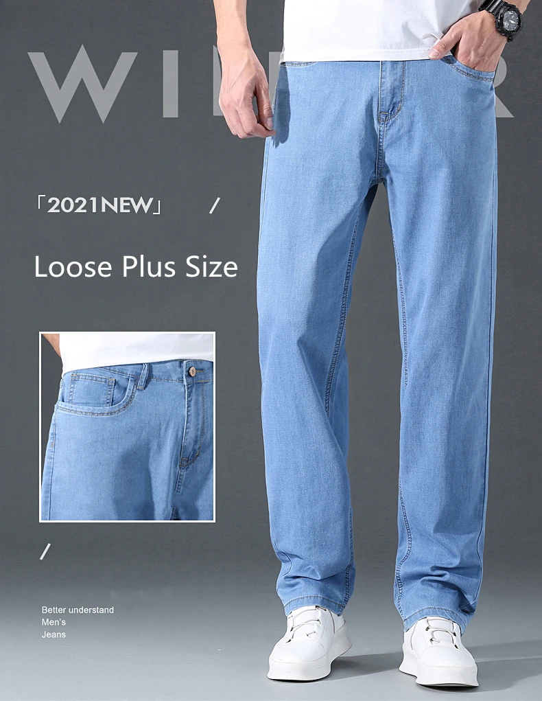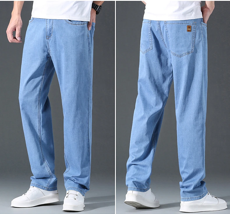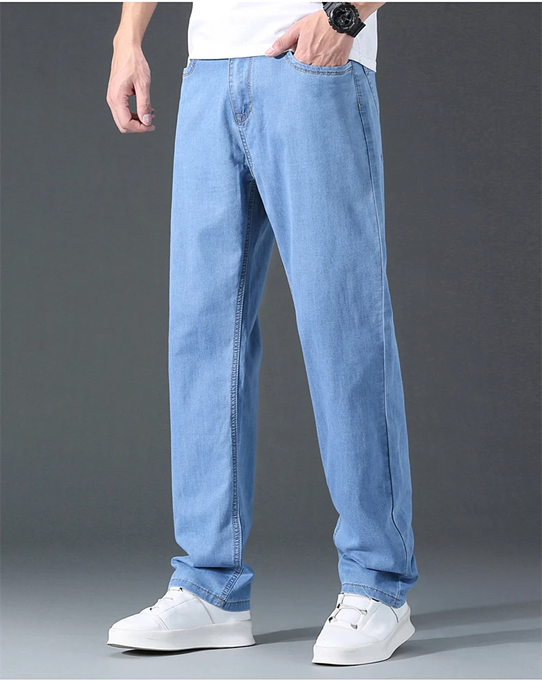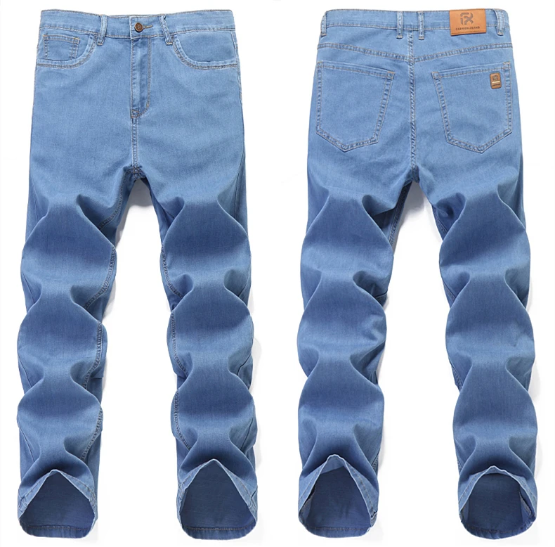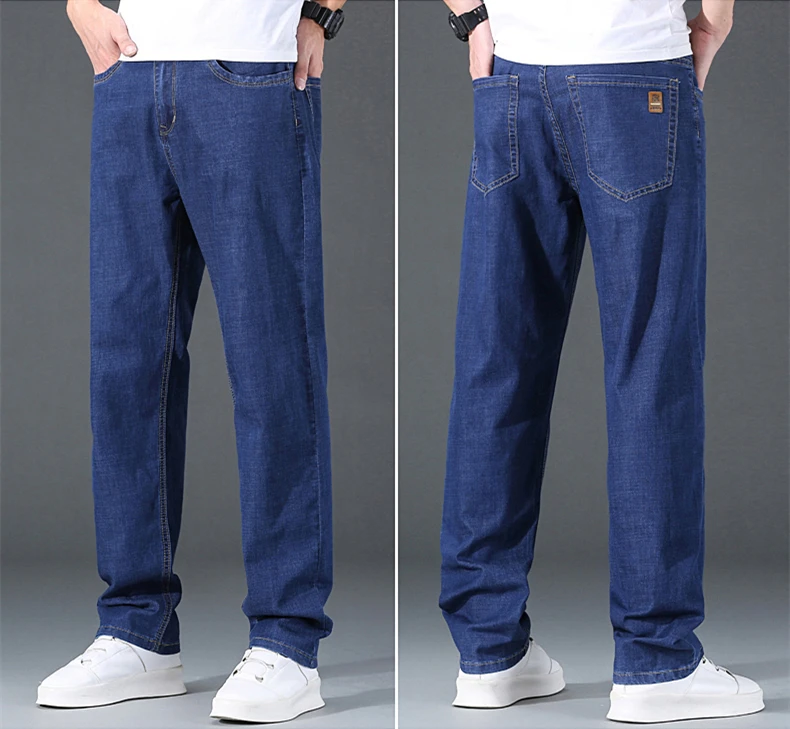 Мужские тонкие прямые свободные джинсы в классическом стиле, деловые повседневные Стрейчевые джинсовые брюки, мужские брендовые легкие мягкие брюки
