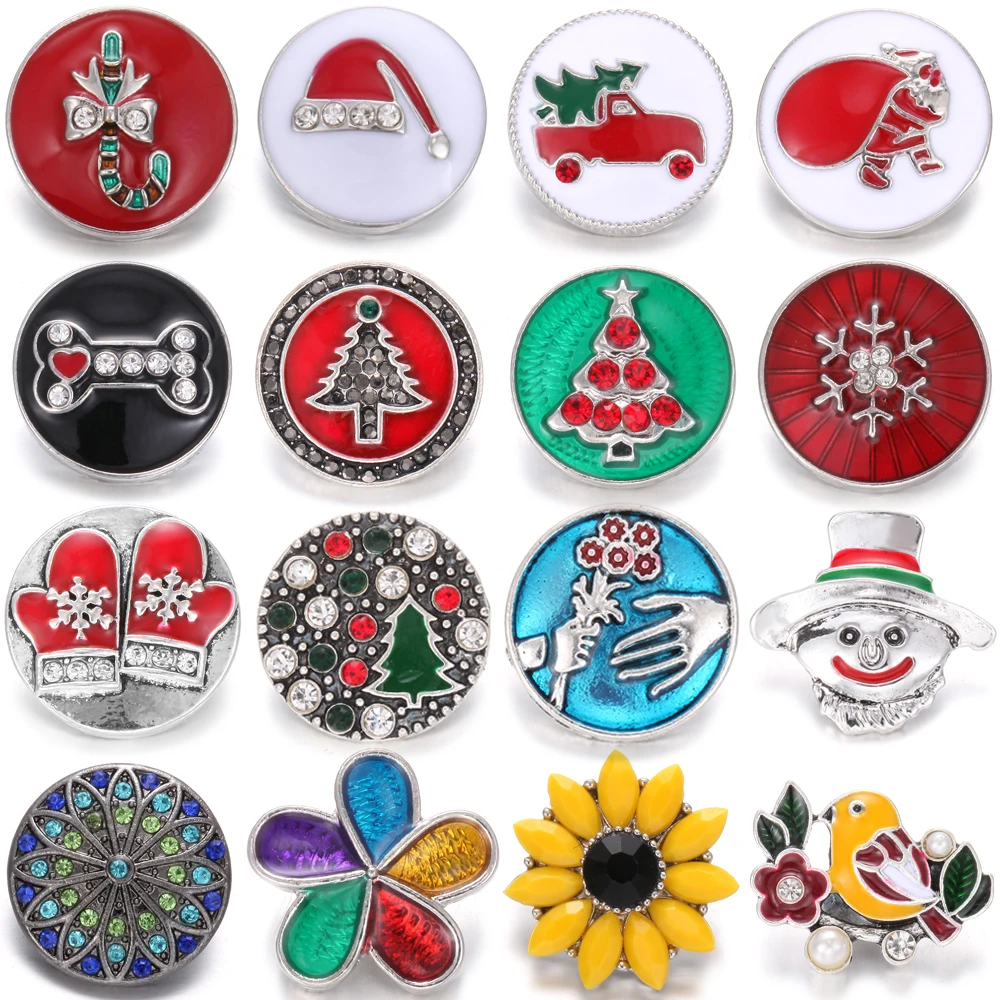 5 шт.Лот, рождественские ювелирные изделия, рождественская елка, снежинка, Санта, снеговик, олень, колокольчик, носок, 18 мм, кнопки, подходят для браслета с кнопками