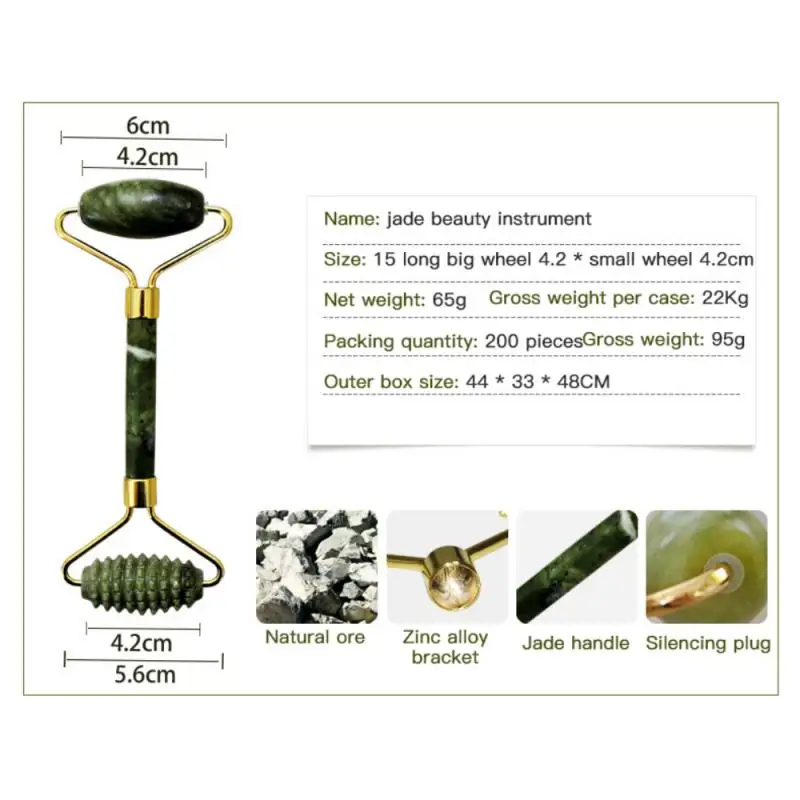 3. Использование Нефритового ролика: нефритовый ролик имеет 2 конца, больший Конец подходит для массажа лица и шеи, Маленький Ролик подходит для глаз и маленького угла, Аккуратно протолкните по направлению роста кожи и помассируйте в течение 10 - 15 минут или Нагрейте ее в горячей воде, восстановите массаж, чтобы ускорить уход за кожей Крем