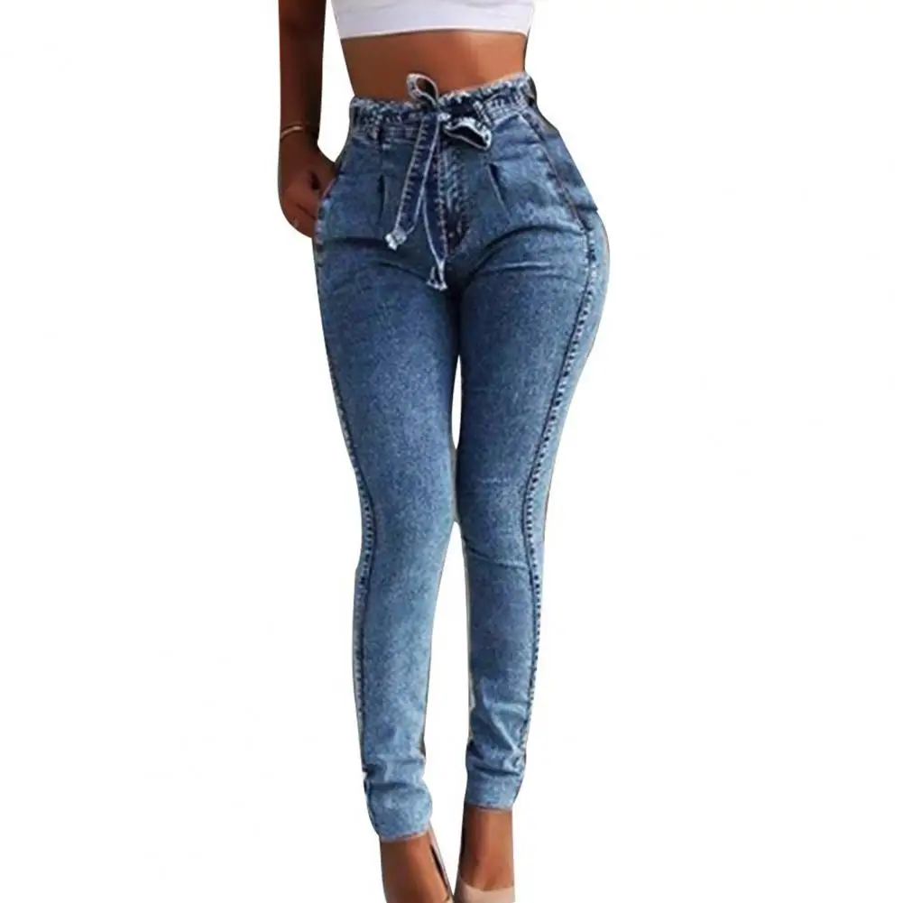 Женские джинсы с высокой талией и множеством карманов, облегающие брюки из денима пуш-ап с бахромой, женские джинсовые брюки, брюки