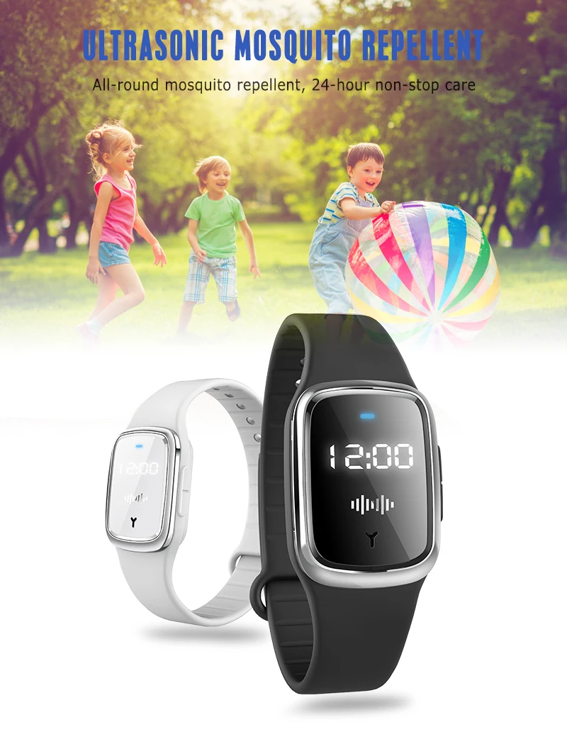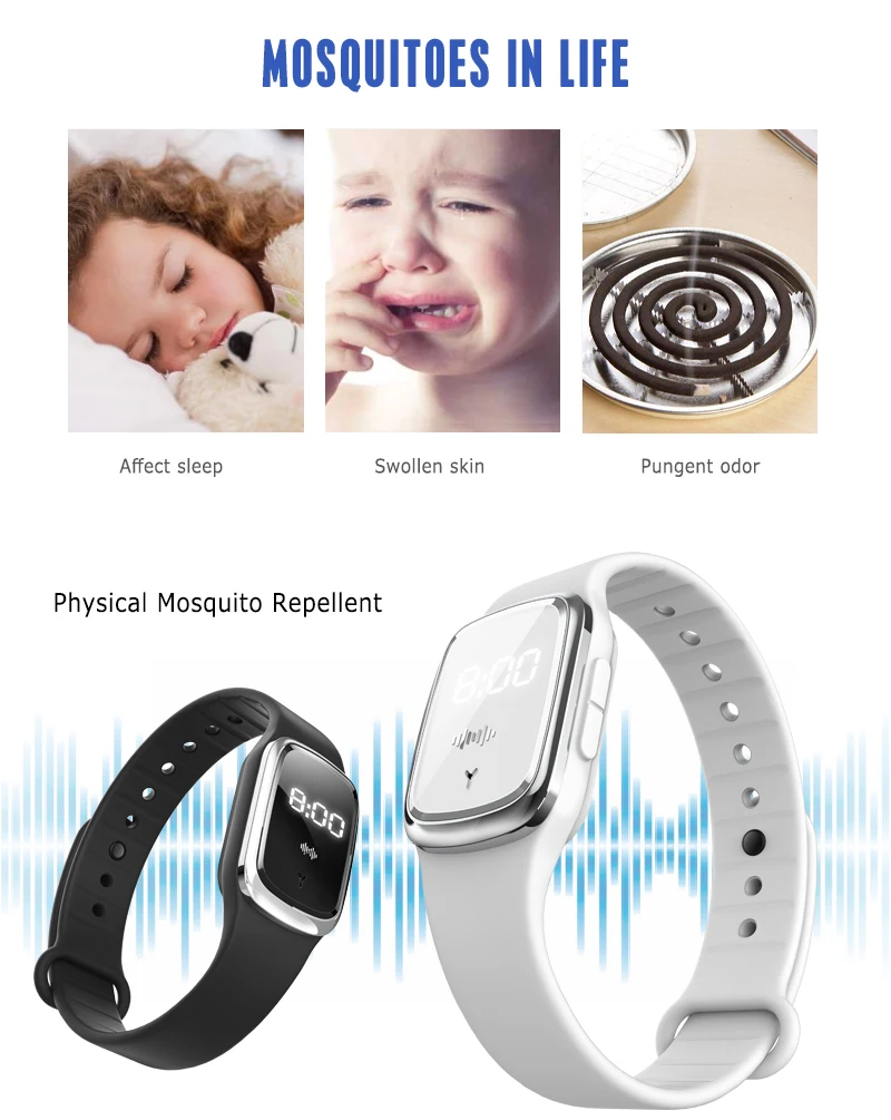 Ультразвуковой браслет-репеллент от комаров, светодиодный дисплей, часы, водонепроницаемый браслет на запястье с защитой от комаров, насекомых, вредителей