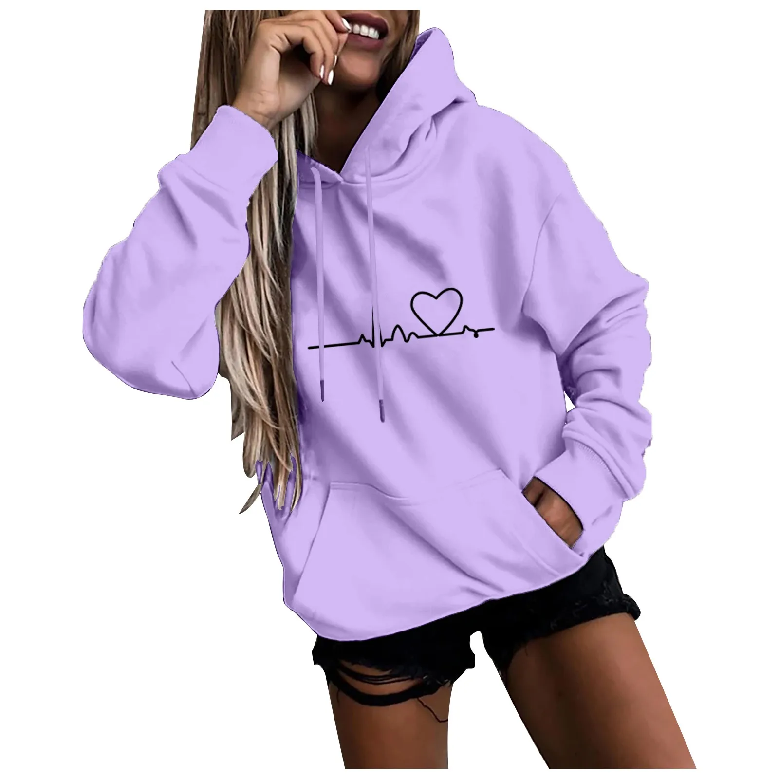 Женская толстовка с капюшоном, с принтом в виде сердца