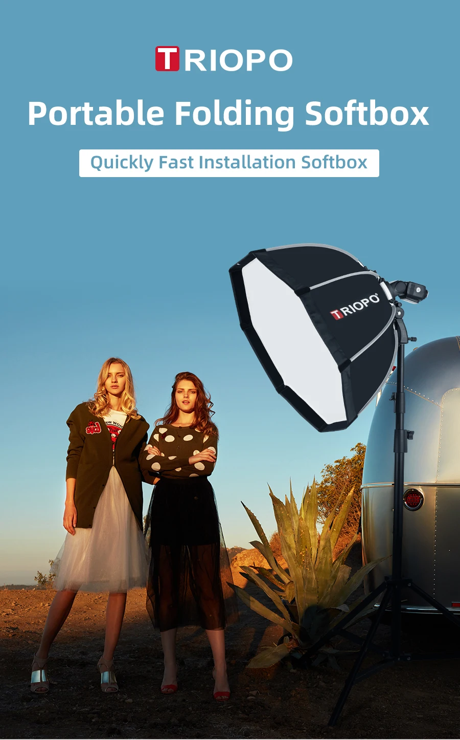 Складной восьмиугольный софтбокс TRIOPO, 55 см, 65 см, 90 см, 120 с...