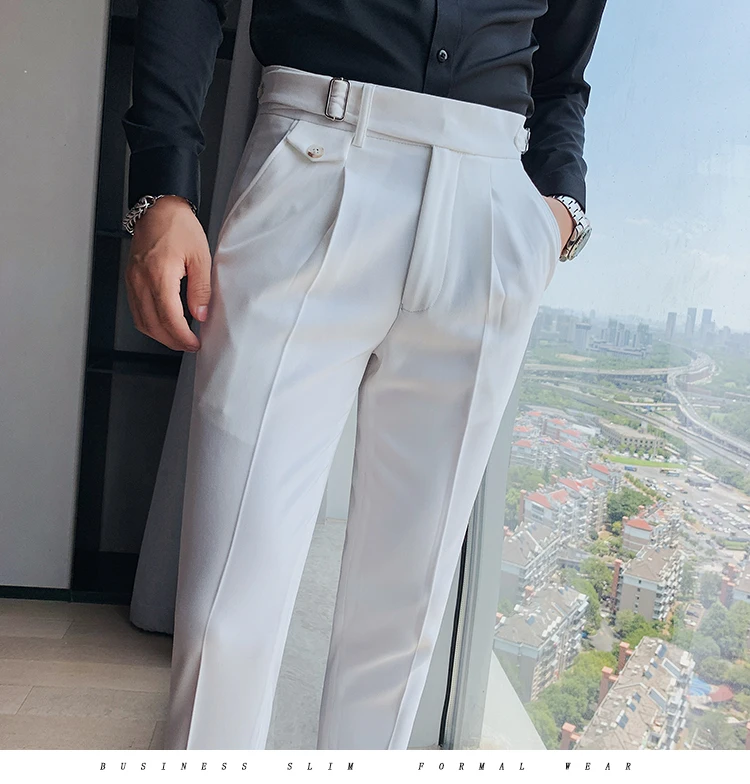 Брюки мужские деловые однотонные, деловой стиль, повседневные зауженные штаны до щиколотки, одежда для мужчин, классические штаны