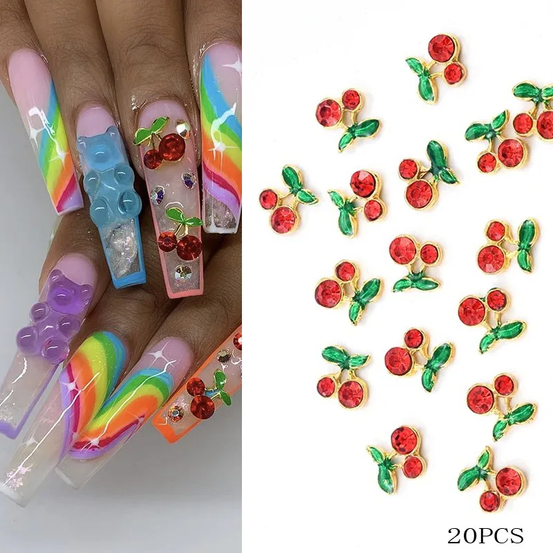 20 шт. вишневые подвески для ногтей Красные кристаллы фрукты для нейл-арта смола подвеска для ногтей DIY Самоцветы 3D сплав Стразы для ногтей бриллианты поставка B0578