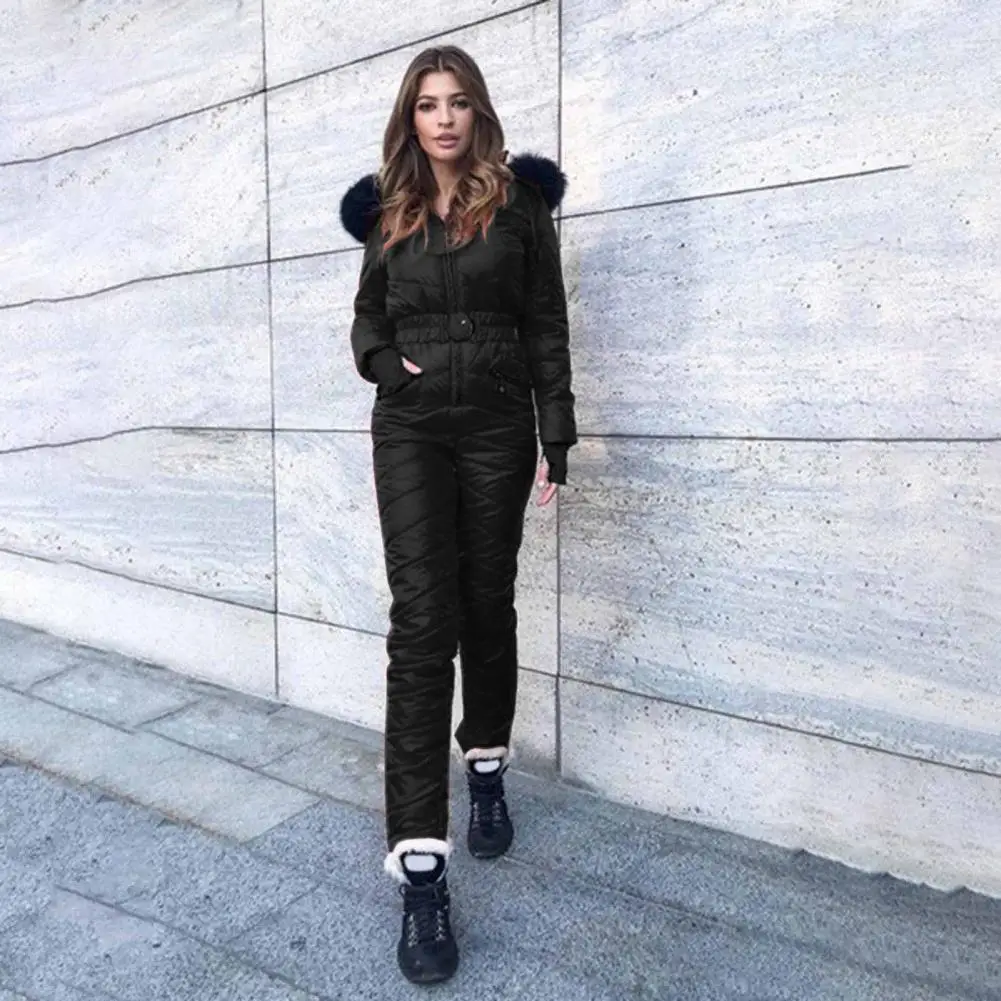 Женский комбинезон сохраняет тепло зимой, однотонный водонепроницаемый комбинезон с подкладкой, зимний комбинезон с капюшоном, уличные лыжные мягкие комбинезоны