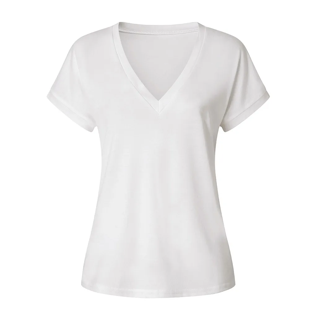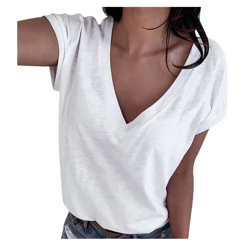 Футболка женская простая, с глубоким V-образным вырезом, лето, футболка matched
