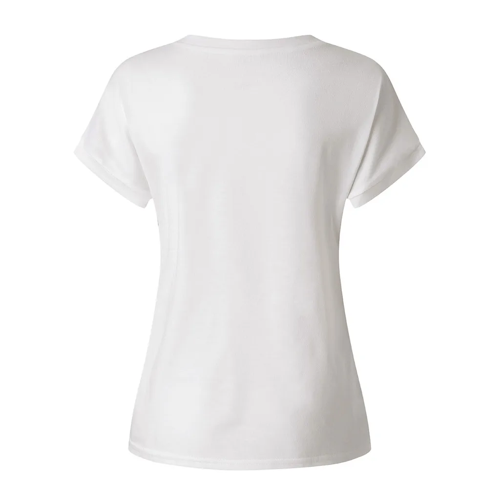 Женская блузка с коротким рукавом, V-образным вырезом и принтом