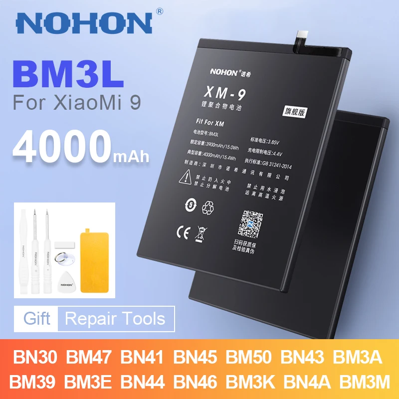 Аккумулятор Nohon BM3L для Xiaomi Mi 9 8 6 Max2 BM50 BM3M BM3E BM3K...