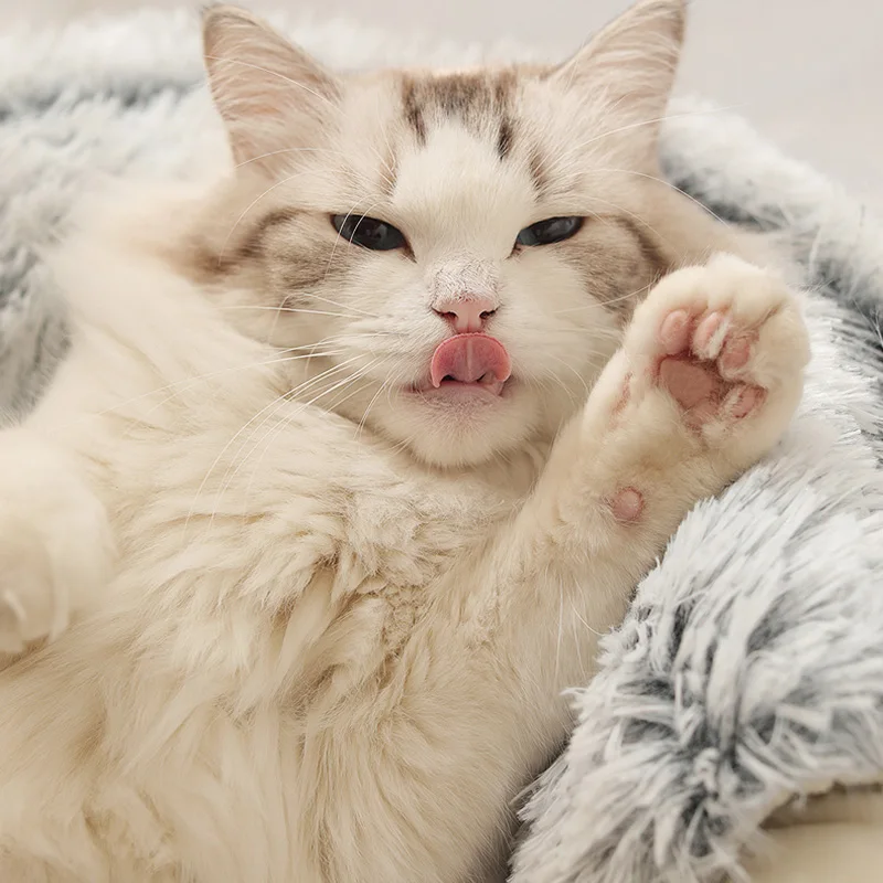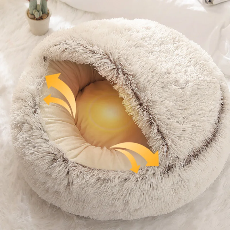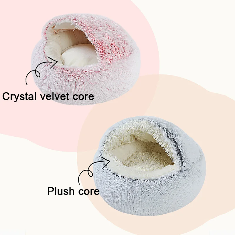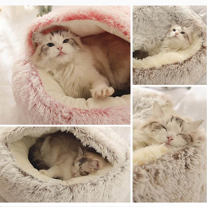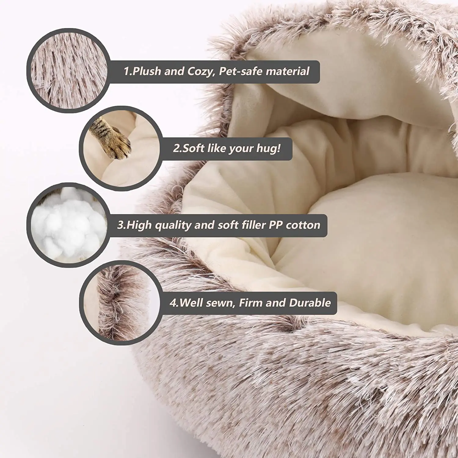 Покрытая Лежанка для кошки 2 в 1, Лежанка для кошки для дома, маленькая пушистая Милая САМОНАГРЕВАЮЩАЯСЯ пончик с капюшоном, моющаяся мягкая Лежанка для домашнего питомца