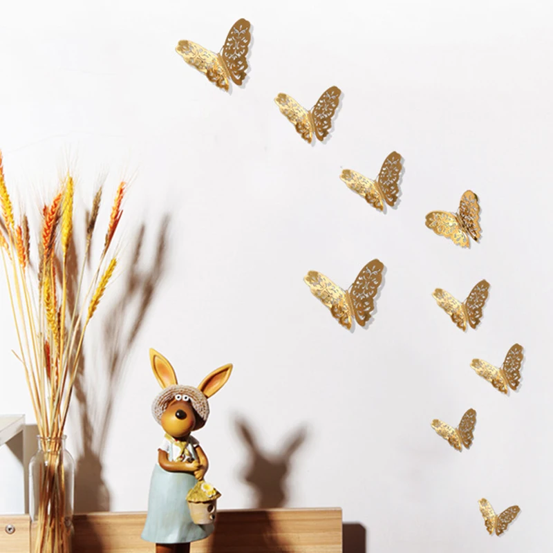 12 шт.лот, полые 3D наклейки на стену в виде бабочки, наклейка, настенные художественные съемные наклейки сделай сам, домашнее свадебное украшение, декоративная наклейка для детской комнаты