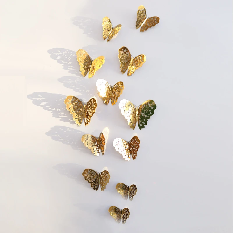 12 шт./лот, полый 3D стикер на стену с бабочкой, наклейка на стену, художественные съемные наклейки, сделай сам, украшение для дома, свадьбы, декор для детской комнаты, наклейкаОписание:
