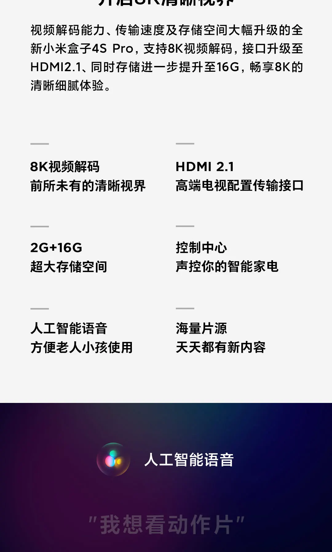ТВ-приставка XIAOMI MI TV Box 4S Pro, 1,9 ГГц, Amlogic, четырехъядерный, 5G, Wi-Fi, bluetooth, Android, 8K, HDR, умный потоковый медиаплеер