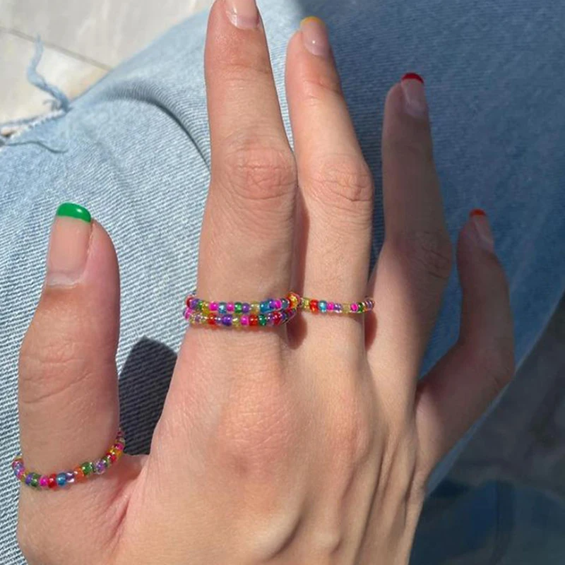 Женское богемное кольцо IF ME, разноцветное простое прозрачное кольцо с бусинами из смолы, регулируемые эластичные модные вечерние ювелирные изделия
