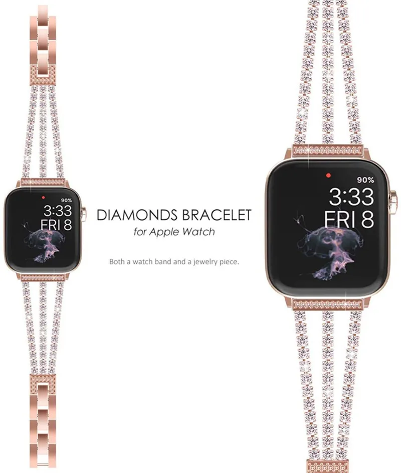 Особенности* Подходит для запястья: 145-205 мм.* Совместим с ремешком apple watch, будет легко сочетаться с другими украшениями. Носите с модными нарядами, и они подходят по размеру. Также отлично подходит для вечернего ношения или для особых случаев, таких как Рождество, День Благодарения.Посылка входит1 * ремешок для часов, умные часы в комплект не входят.