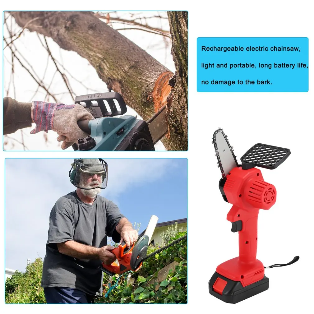 Беспроводная 4-дюймовая бензопила с питанием от аккумулятора, портативная ручная бензопила одной рукой для обрезки деревьев и резки ветвей дерева