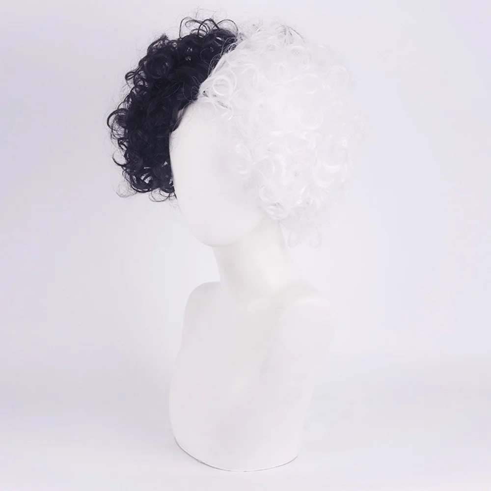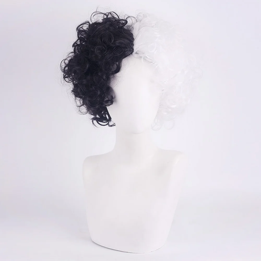Черно-белый короткий кудрявый парик из аниме-фильма Cruella De Vil для косплея, синтетические волосы, бриллианты для женщин и взрослых