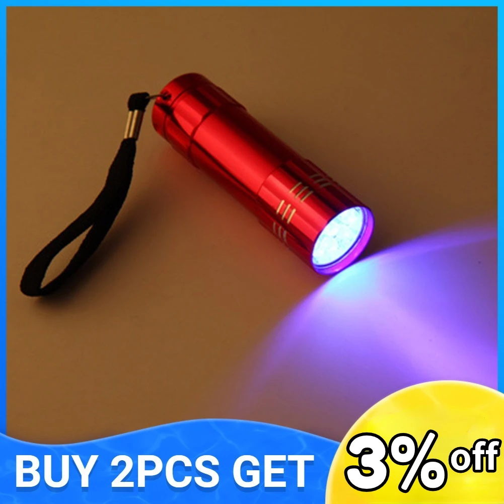 Миниатюсветильник ный Ультрафиолетовый светодиодный фонарик с 9 светодиодами, водонепроницаемый алюминиевый фонарик, уличная портативная тактисветильник лампа, УФ-лампа