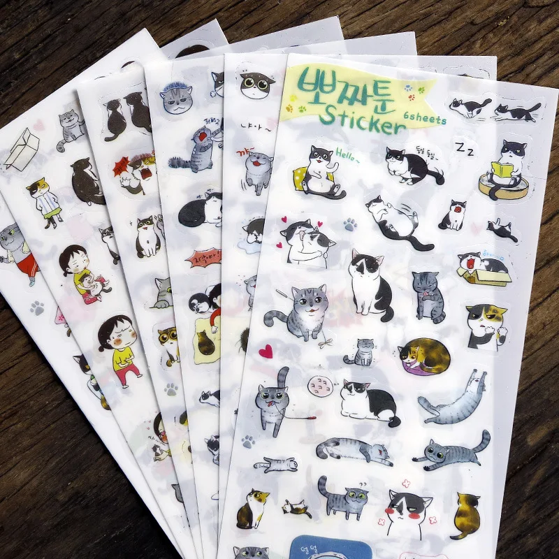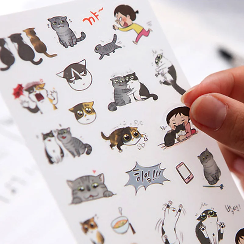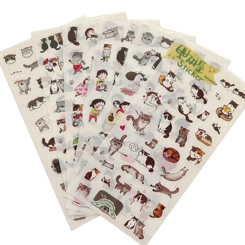 6 листов, милые Мультяшные пластиковые наклейки для кошек, DIY ежед...