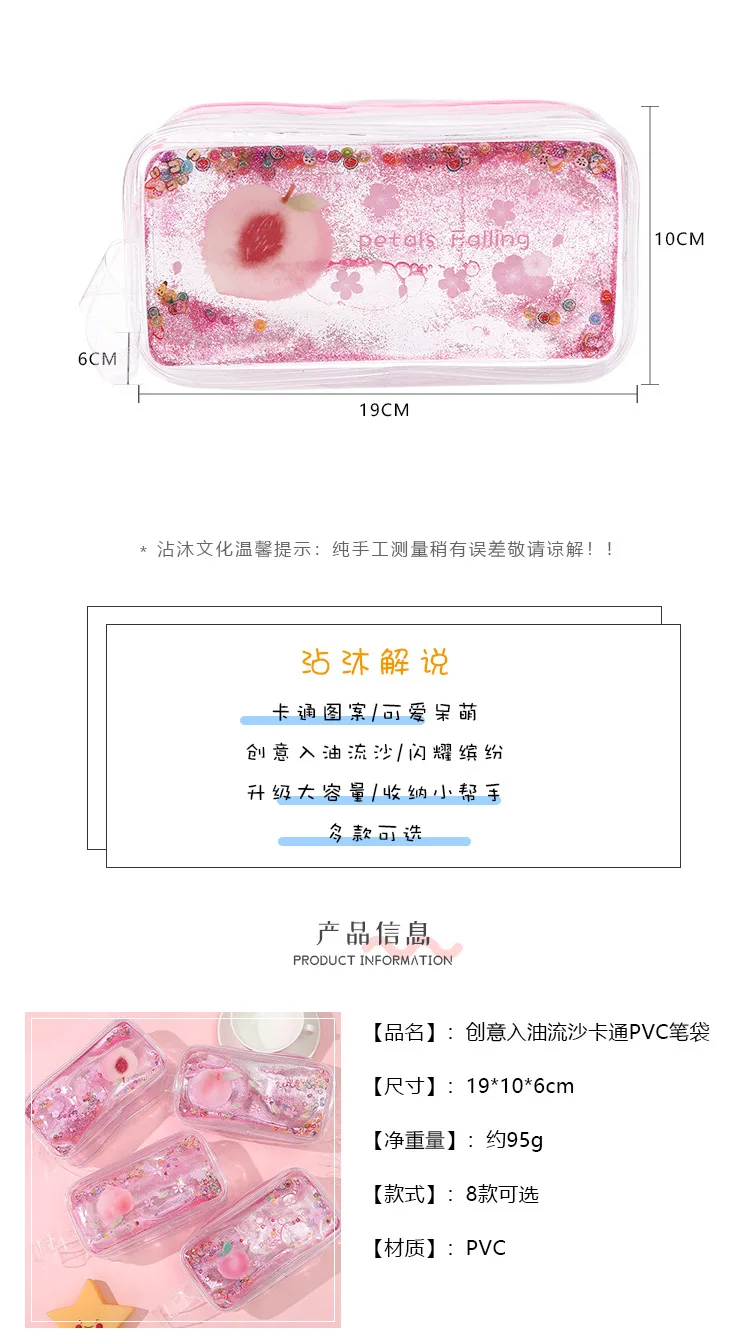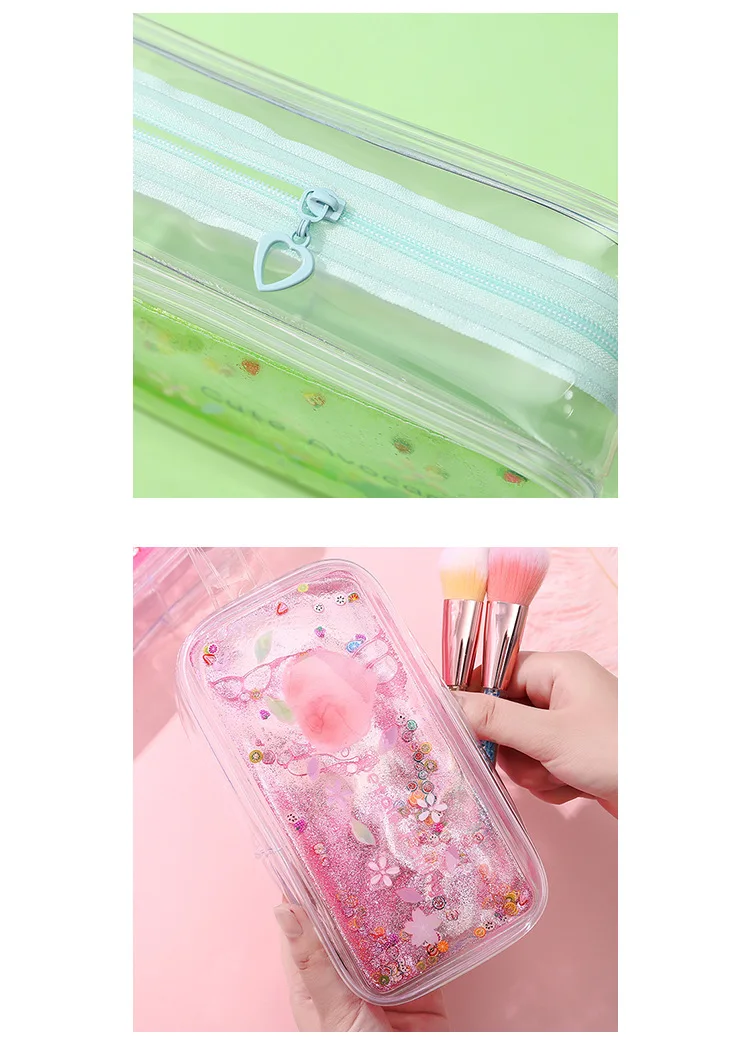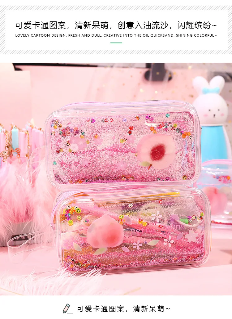 Кавайный чехол для карандаша для девочек, зыбучие пески, прозрачные чехлы, школьный пенал, большая емкость, принадлежности, Канцтовары, обратно в школу