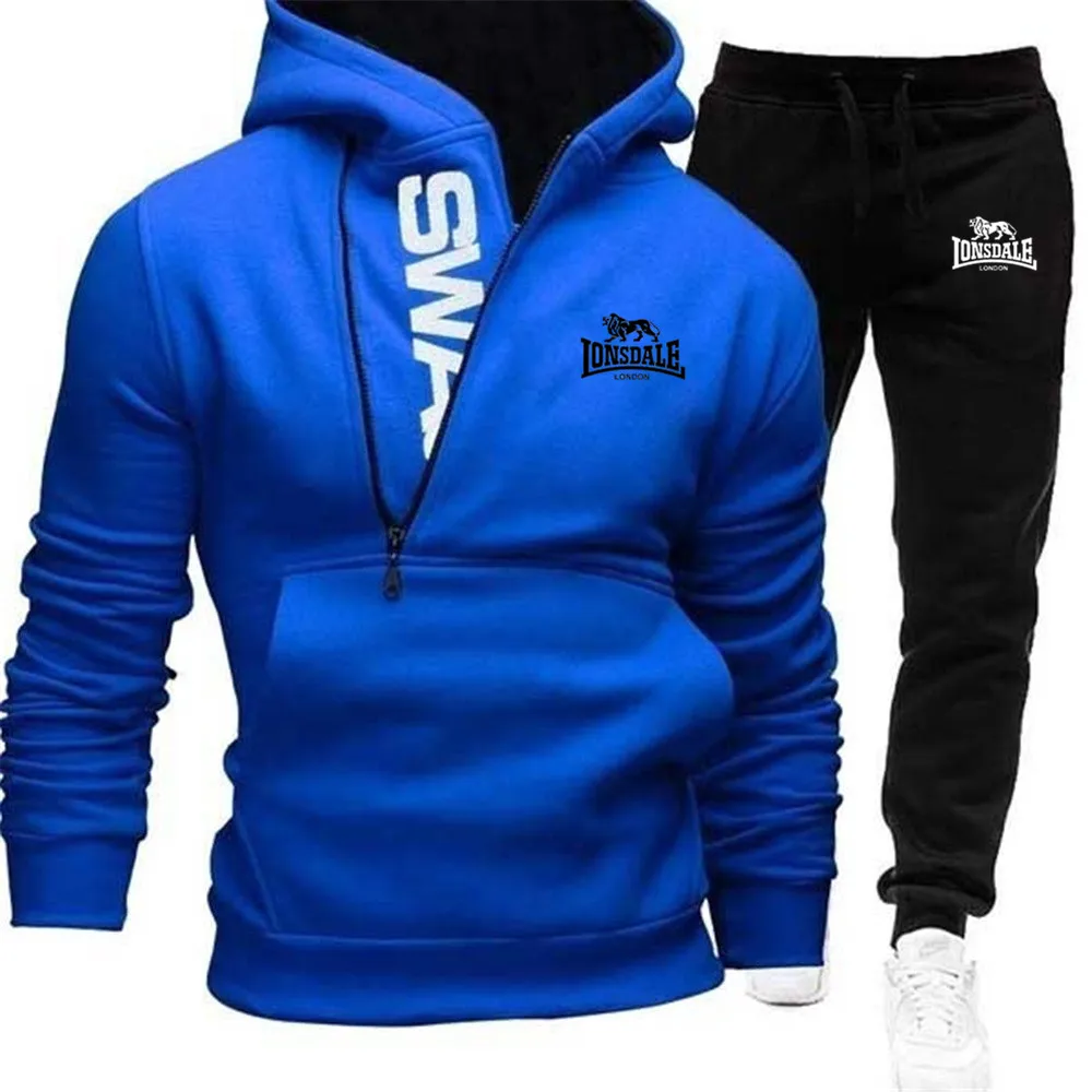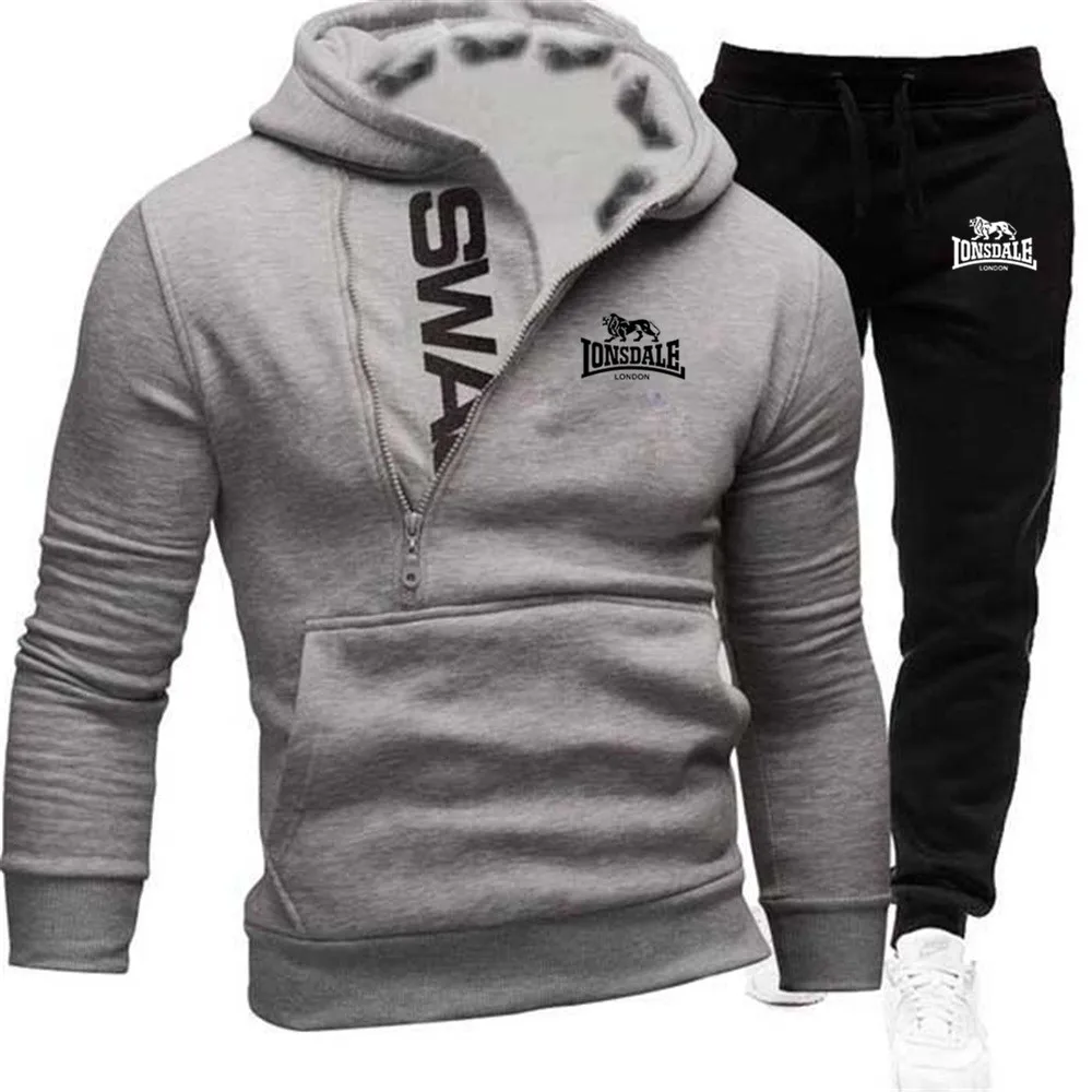 Мужской костюм на молнии LONSDALE, толстовка, мужской кардиган, осенне-зимняя толстовка, большие размеры + спортивные повседневные брюки, комплект из 2 предметов