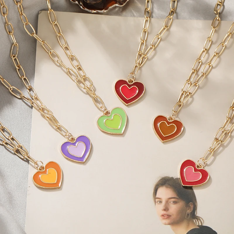 Модные Инс эстетические красочные двухслойные Любовь Сердце ожерелье кулон для женщин девушка хип-хоп Длинная цепочка ожерелья ювелирные изделия
