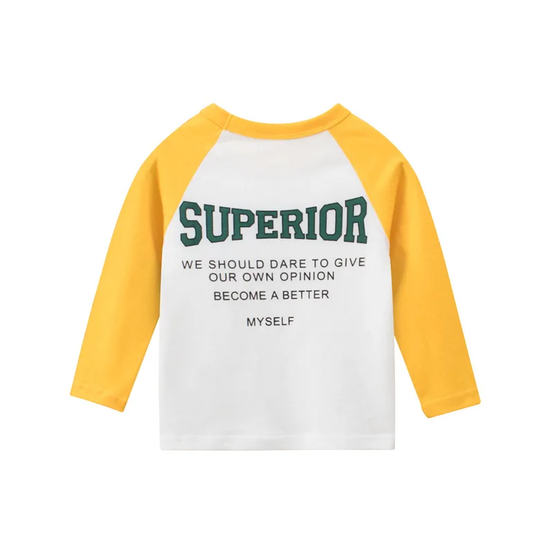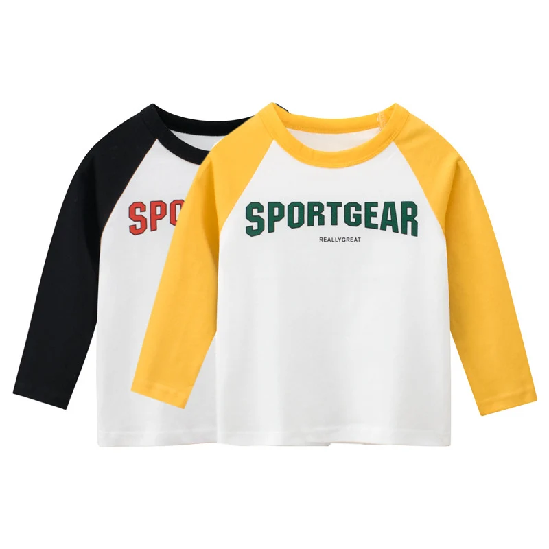 Модные детские хлопковые топы с длинными рукавами; Новые осенние повседневные футболки с буквенным принтом для мальчиков и девочек; Детские футболки в стиле пэчворк