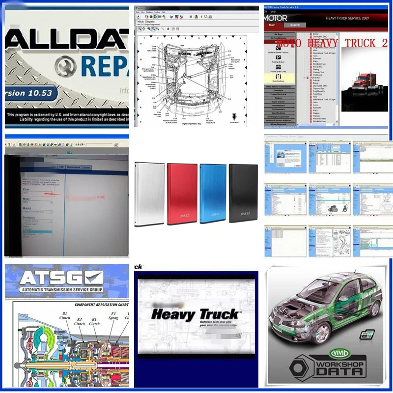 Программное обеспечение для ремонта автомобилей 2021 all data mi .. ll 2015 alldata 10.53 vivid мастерская 10,2 + atsg + moto тяжелый грузовик 49 в ТБ HDD USB3.0