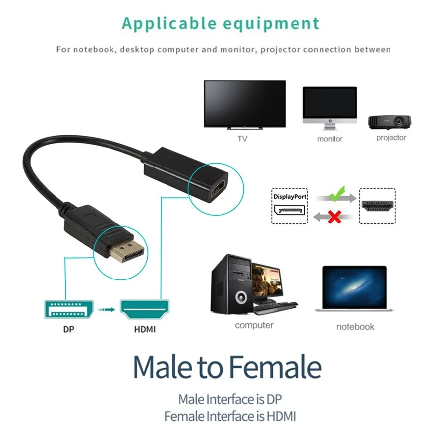 Переходник с DP на HDMI-совместимый кабель штырь-гнездо для ноутбука HPDELL, ПК, порт дисплея на 1080P HDMI-кабель com, конвертер адаптера