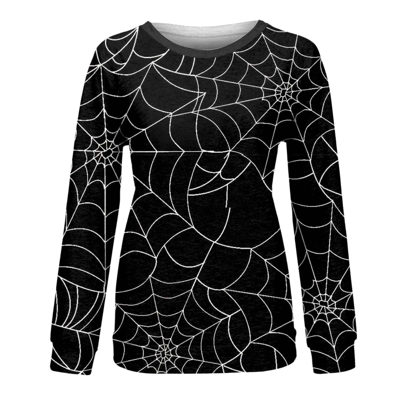 Женская рубашка с принтом на Хэллоуин, свитер с длинным рукавом, Свободный пуловер, топ, блузка, футболка