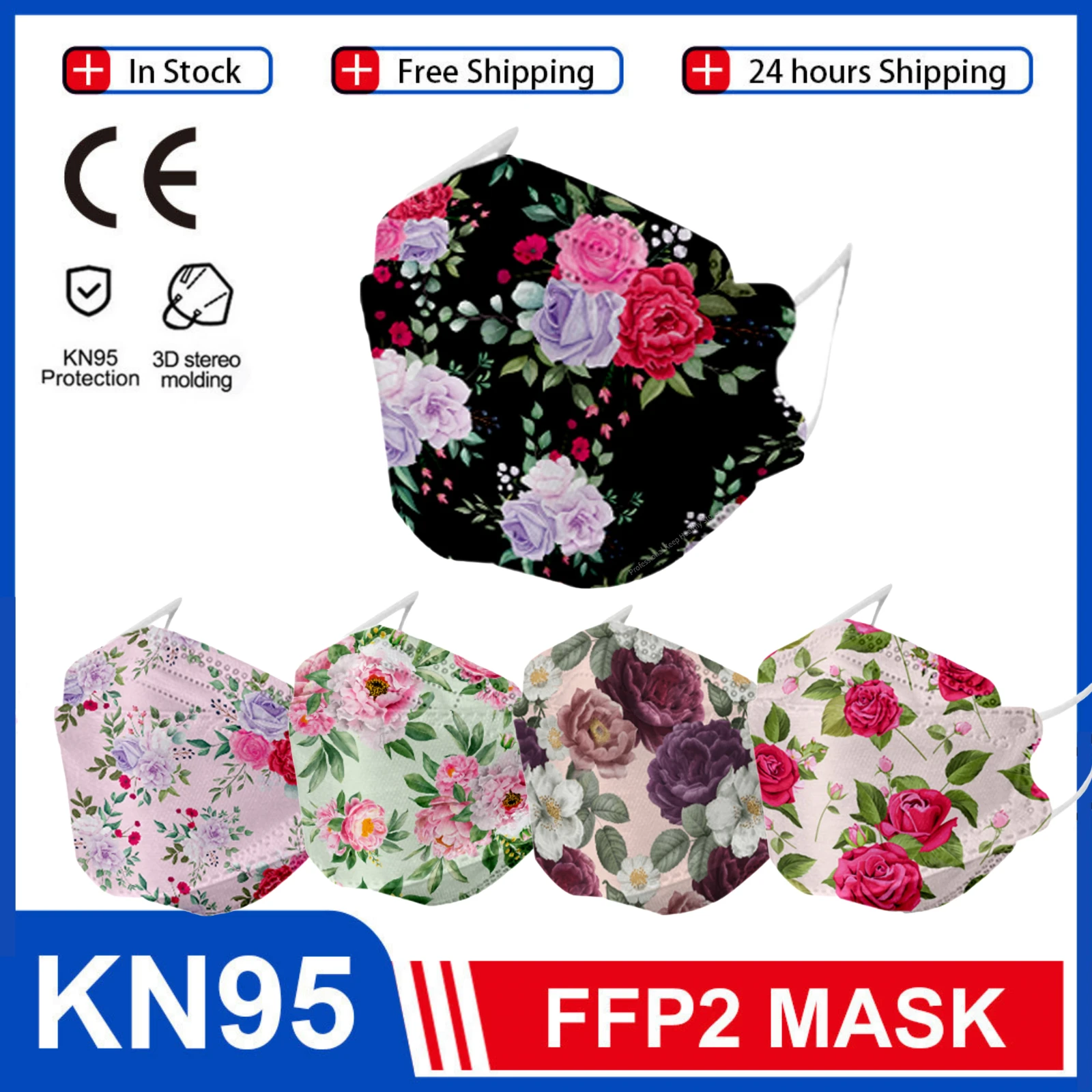 Маска для лица KN95 с цветочным принтом FFP2MASK многоразовая маска...