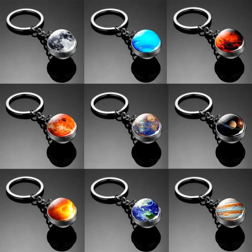 Брелок для ключей с солнечной системой, двухсторонний брелок с изображением планеты, галактики, туманности, пространства, Луны, земли, солнца, Марса, стеклянного шара