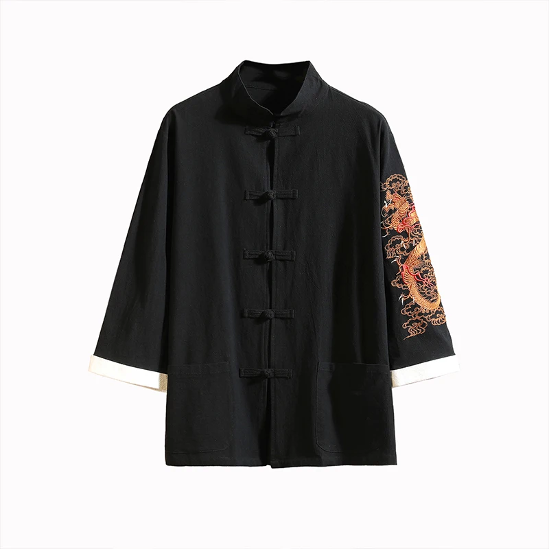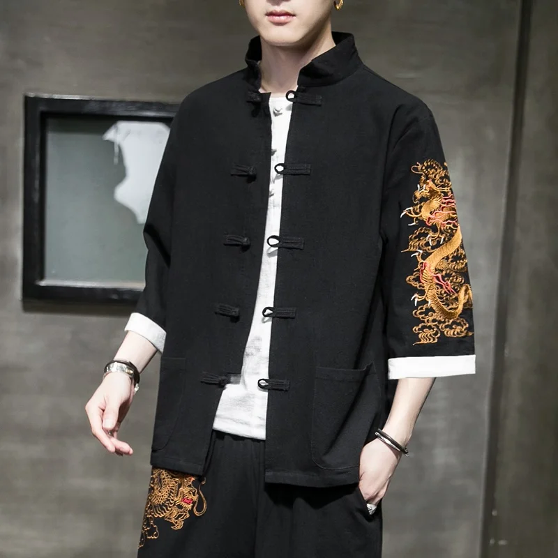 Традиционная рубашка с китайским драконом блузка Hanfu Wu Tang, Мужская футболка в стиле кунг-фу, топы, куртки, Ципао, новогодние пальто