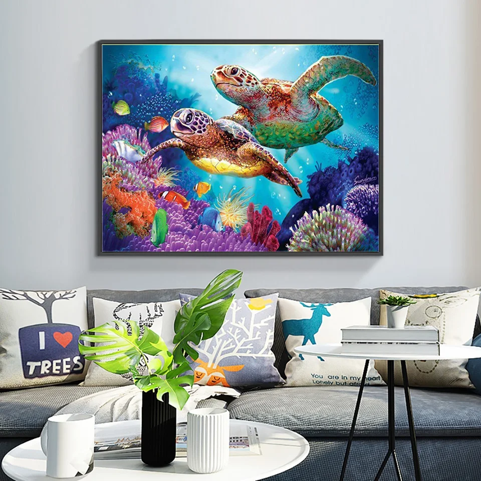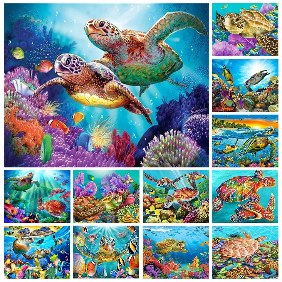 Набор для алмазной живописи 5D "сделай сам", квадратная круглая Алмазная вышивка с изображением черепахи, океан, Алмазная мозаика для украшения