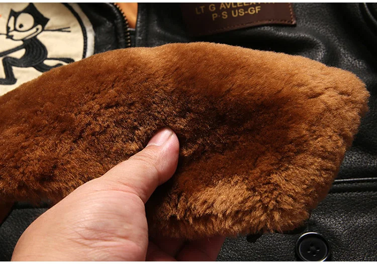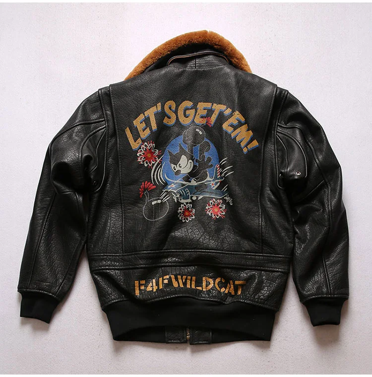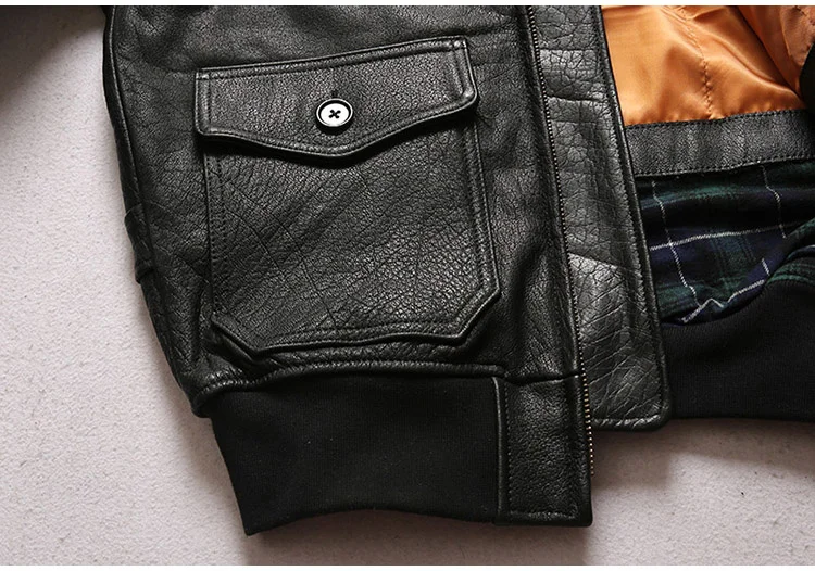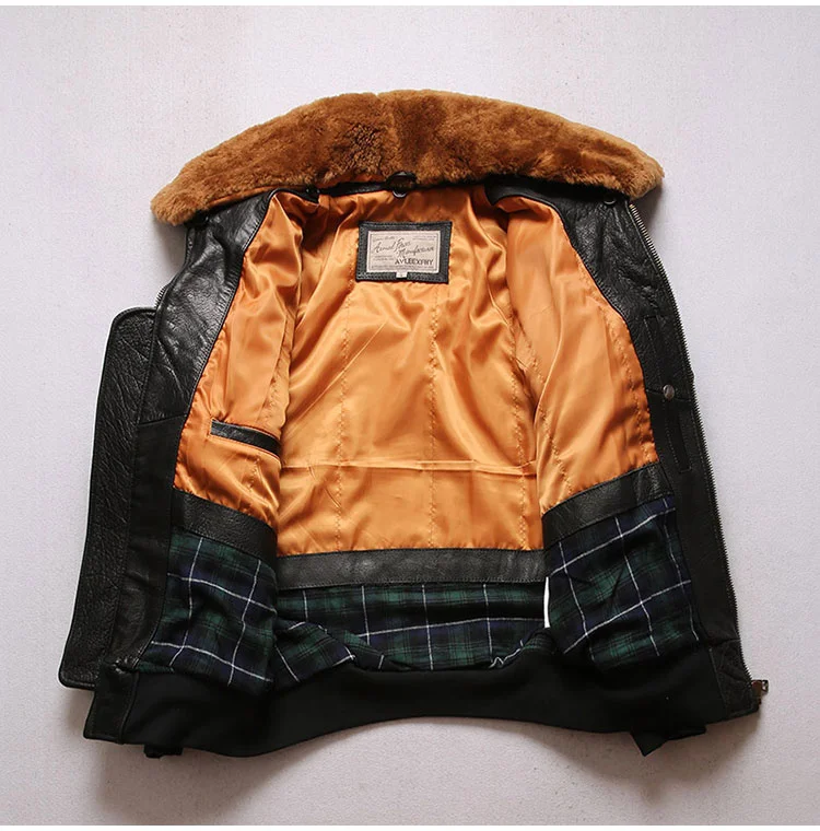 Мужская кожаная куртка-пилот, черная короткая куртка-Авиатор из натуральной воловьей кожи в стиле милитари, 2021, 3XL, со съемным воротником, осень размера плюс