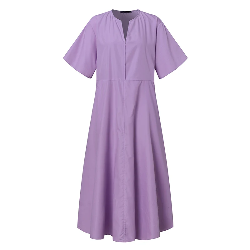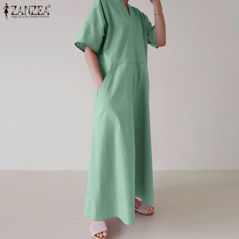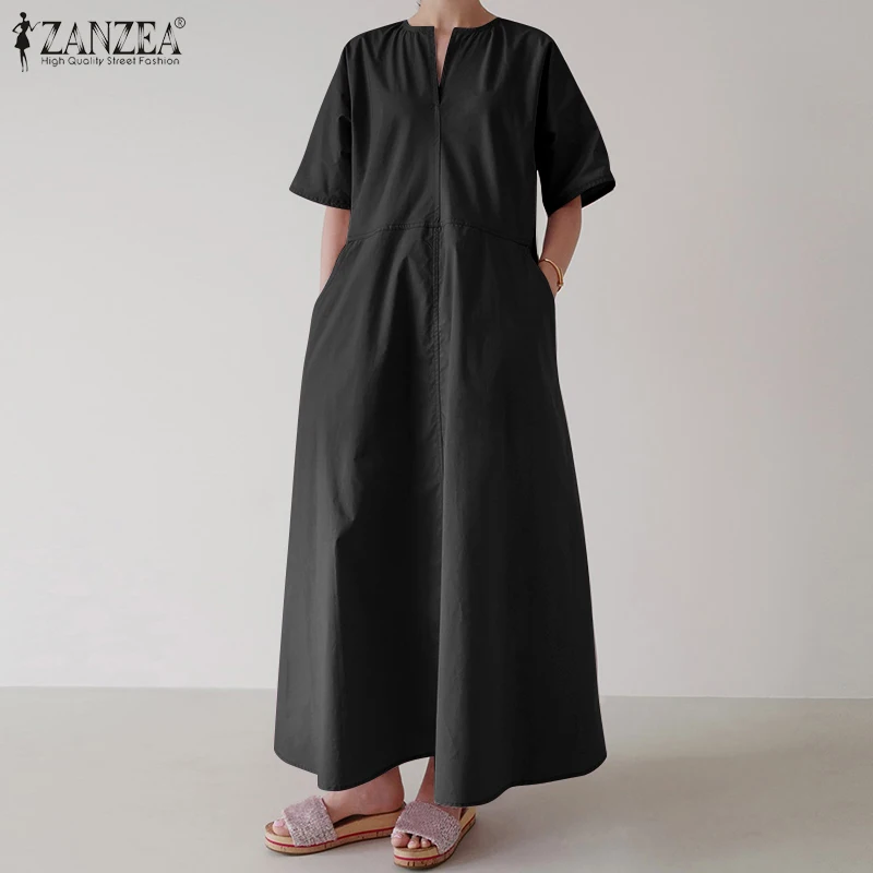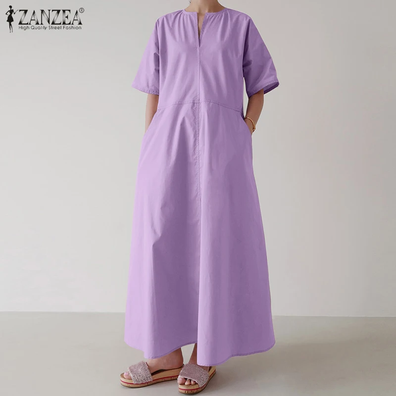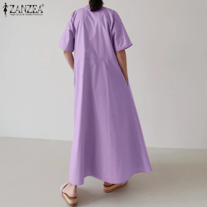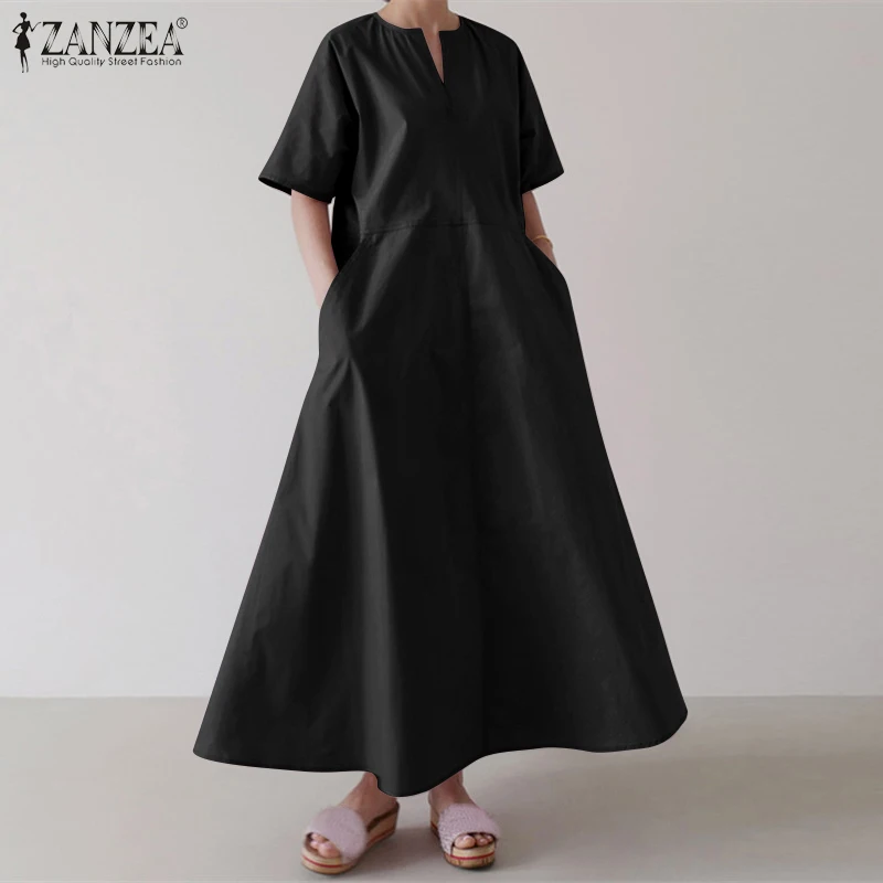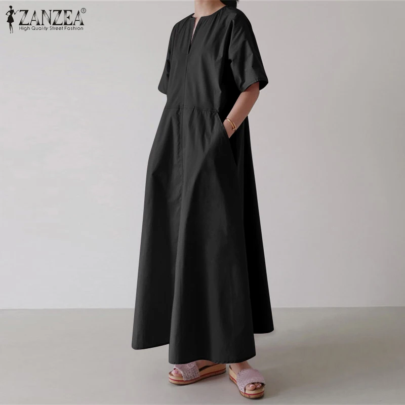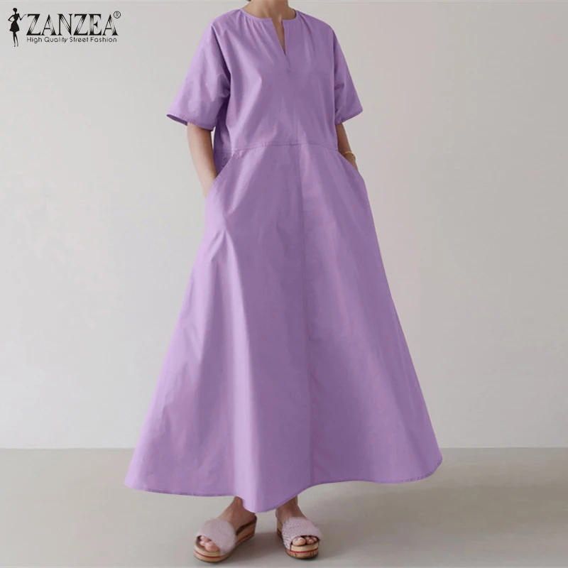 Платье ZANZEA женское с коротким рукавом, однотонный стильный сарафан большого размера с карманами, лето 2021