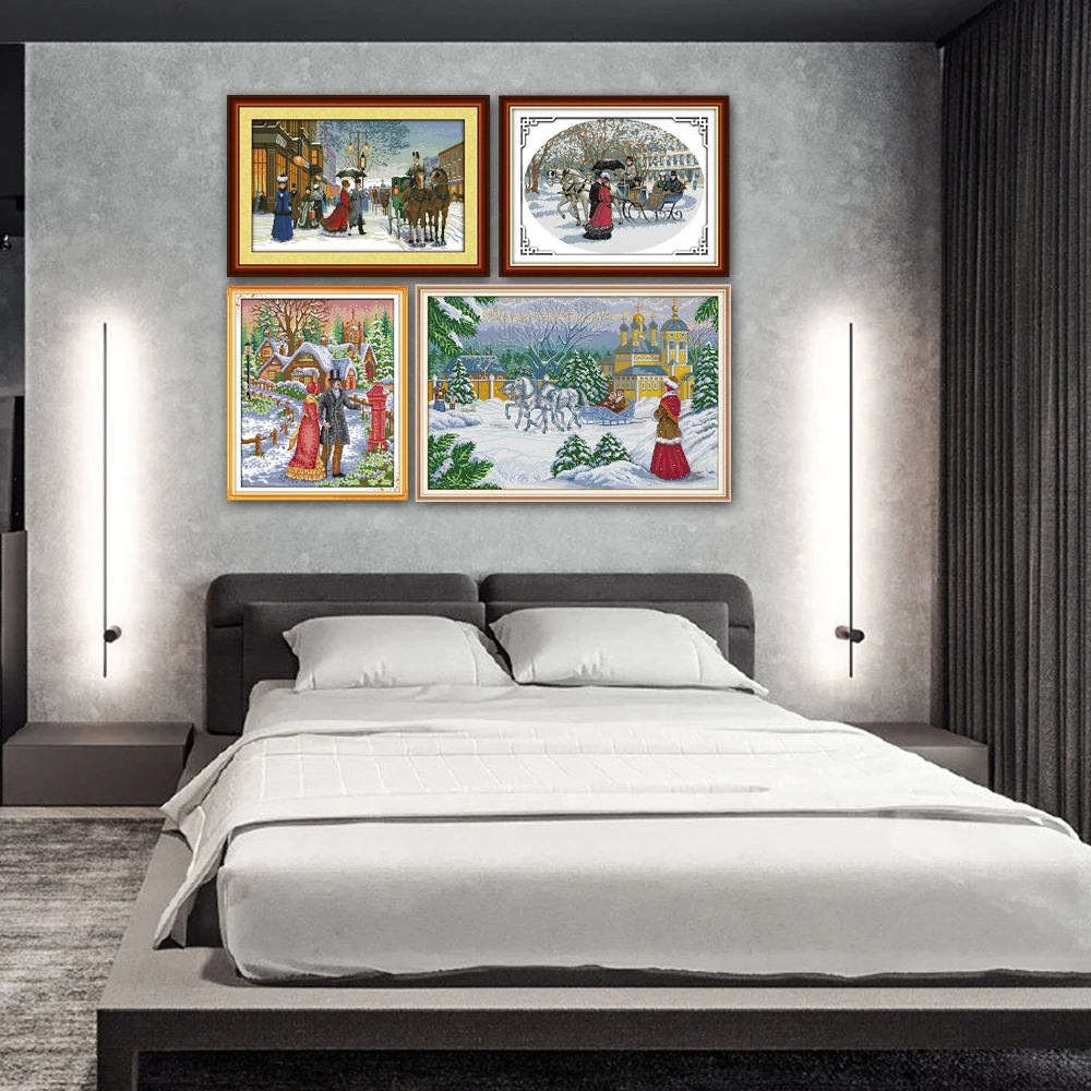 Наборы для вышивки крестиком гуляйте по снегу ожидание Сумерки в зарубежной стране снежный день считается отпечатанным домашним декором Набор для вышивки крестиком