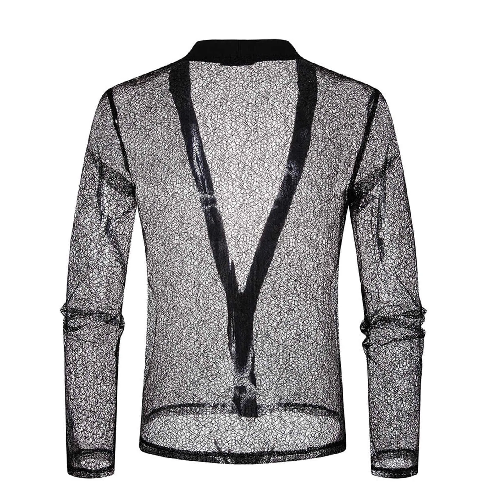 Мужские Клубные вечерние однотонные прозрачные сетчатые кардиганы с длинными рукавами