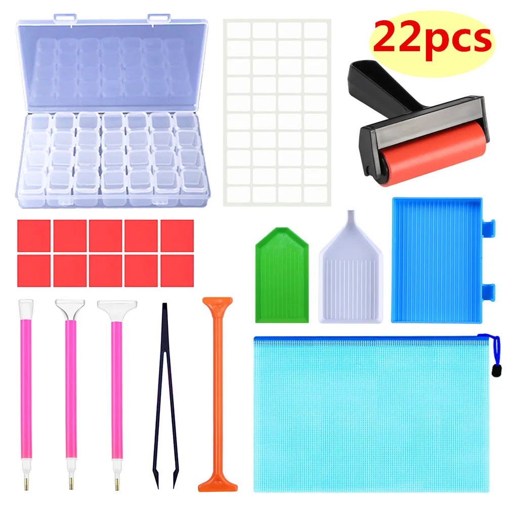 Набор для алмазной живописи сделай сам, набор из 22 предметов, аксессуары для алмазной живописи, ящик для хранения из 28 элементов, для вышивки крестиком