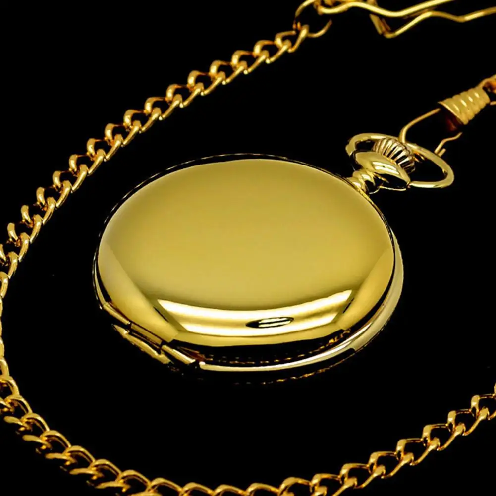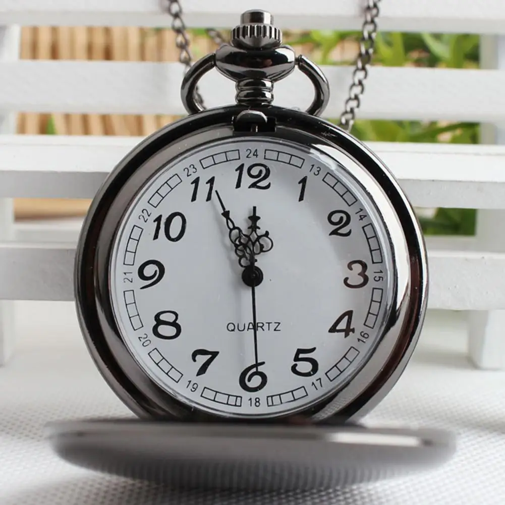 Роскошные карманные часы унисекс в стиле ретро с гладким круглым циферблатом и цифрами Аналоговые кварцевые наручные часы с цепочкой и ожерельем