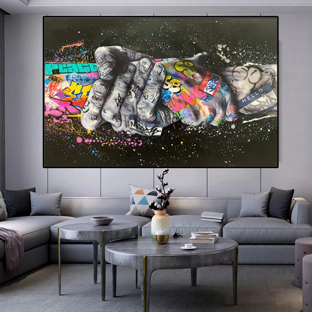 Граффити художественная живопись Пара ручная абстрактная картина на холсте Печать плакаты и принты современная домашняя картина для украшения стен