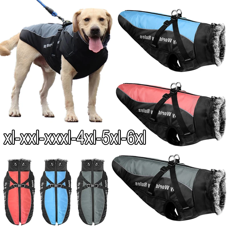 Куртка для больших собак, меховая Светоотражающая зимняя одежда для домашних животных, водонепроницаемое пальто для больших и средних собак со съемной теплой подвязкой для щенков