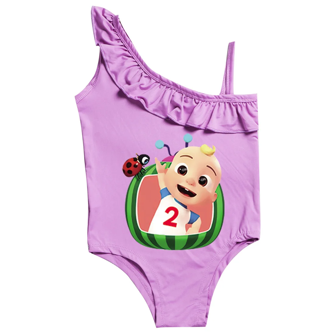 Детский купальный костюм; Цельный купальник для маленьких девочек с героями мультфильмов; Cocomelon JJ