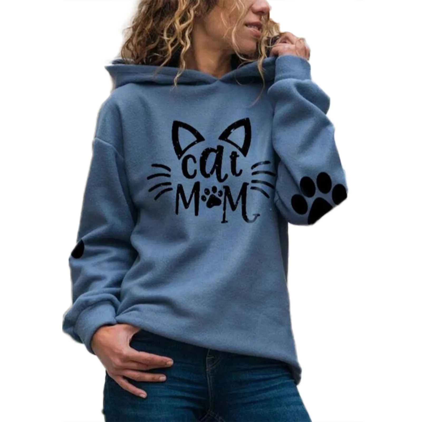 Женская Повседневная Толстовка размера плюс, пуловер с длинным рукавом и надписью Kawaii Cat, осенняя теплая толстовка с капюшоном, топы
